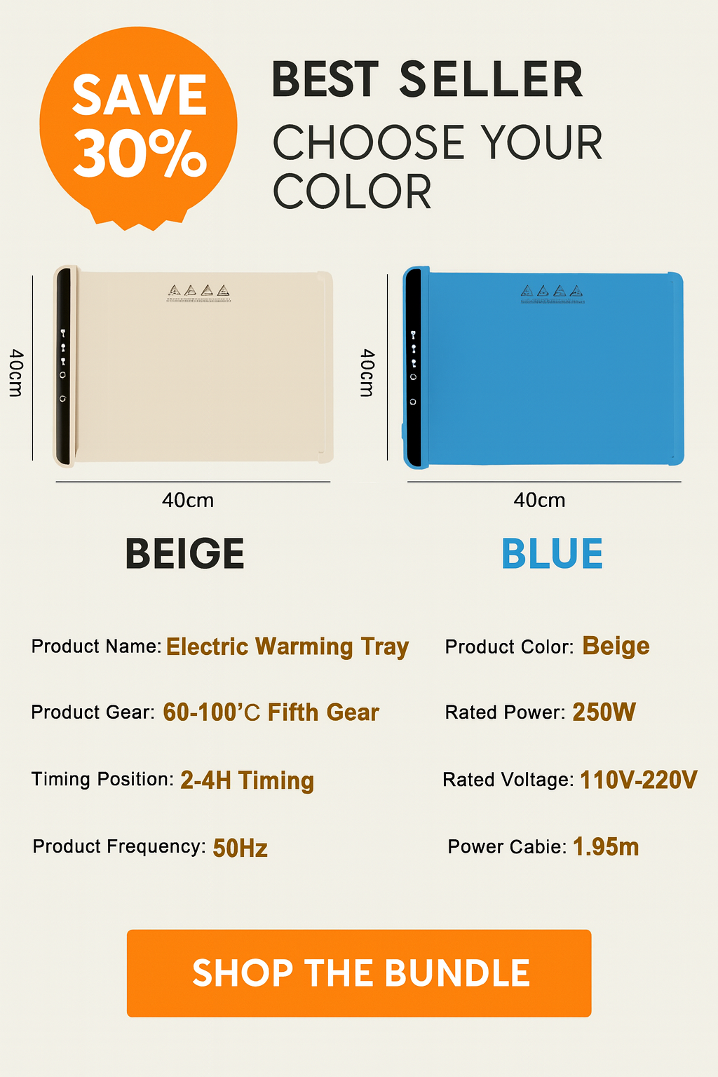 Vorma Electric Heating Tray – 250W Foldable Food Warmer